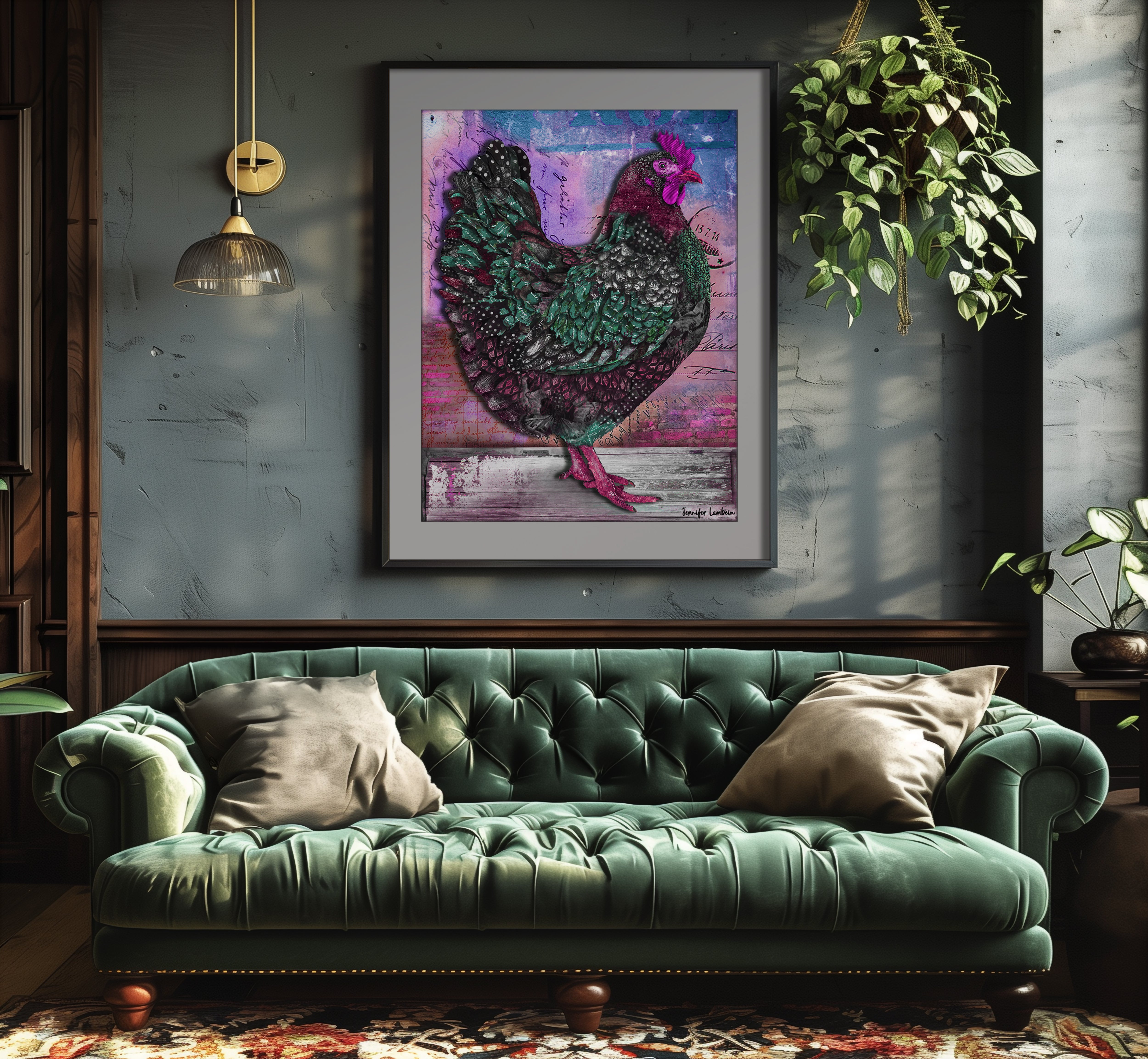 The hen bird art is printed on acid free paper with an elegant linen texture. Its subtle linen finish enhances the artistic aspects of the work.