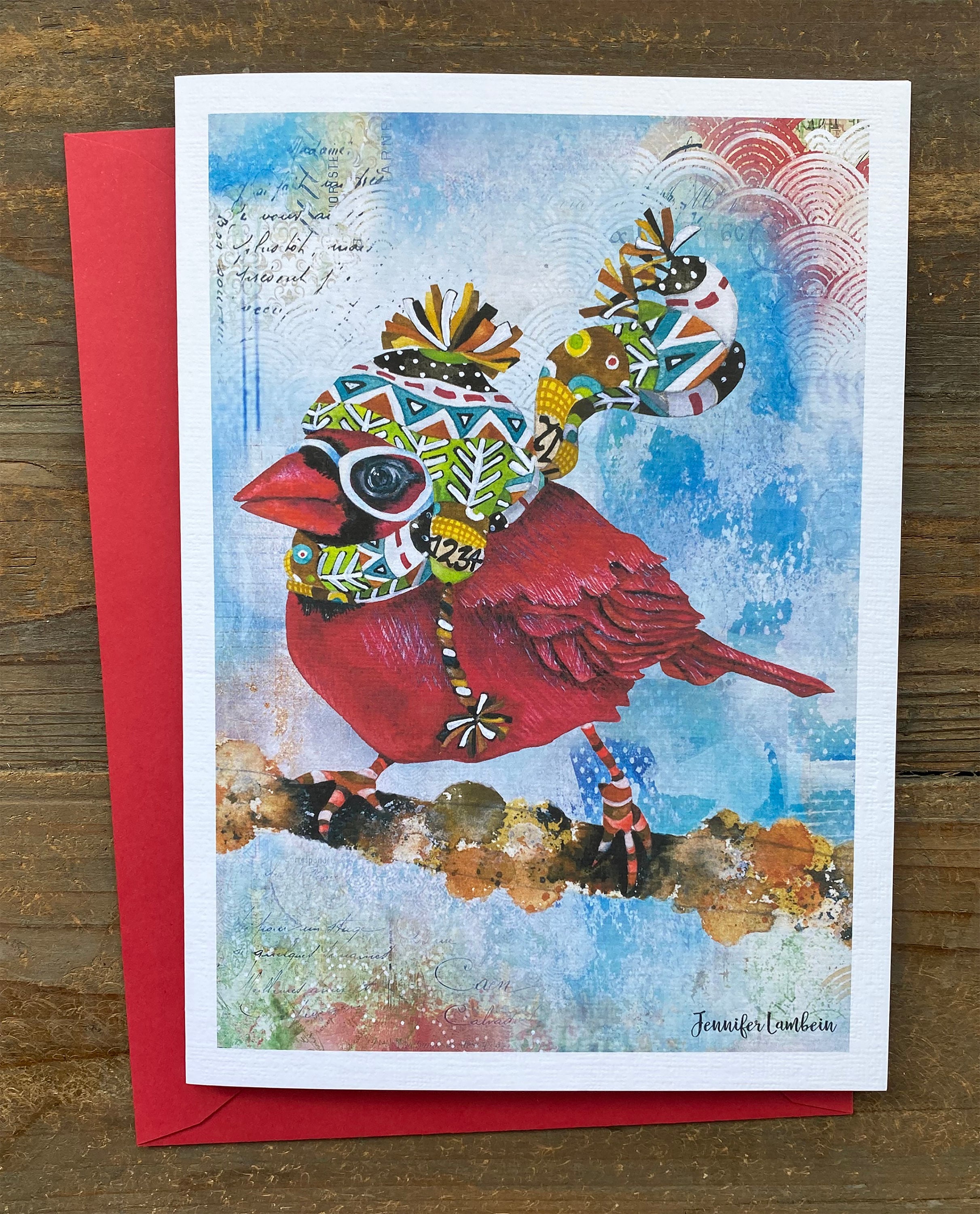 Bring true joy, love & laughter to friends and family this holiday season with this gorgeously festive cardinal greeting card.