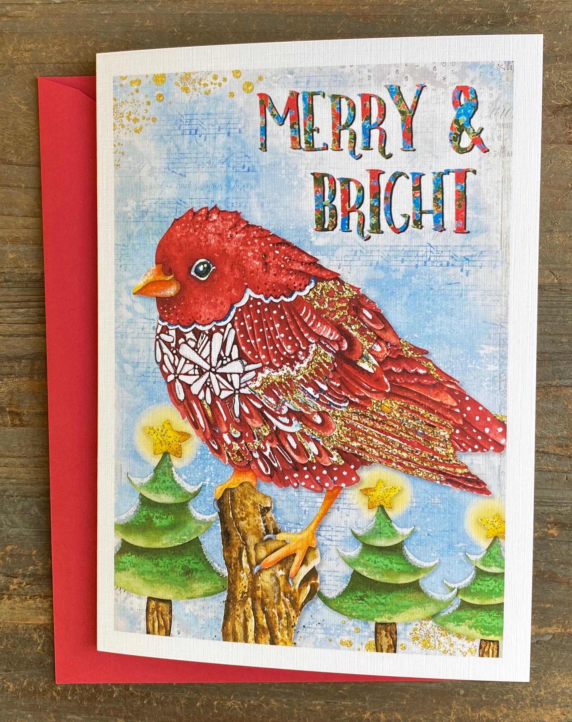 Bring true joy, love & laughter to friends and family this holiday season with this gorgeously festive bird Christmas card.