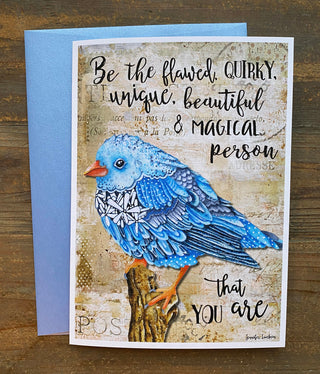 - A7 sized card, 5x7. Comes with a beautiful matching envelope. Full color artwork on both the outside and inside of the card.
