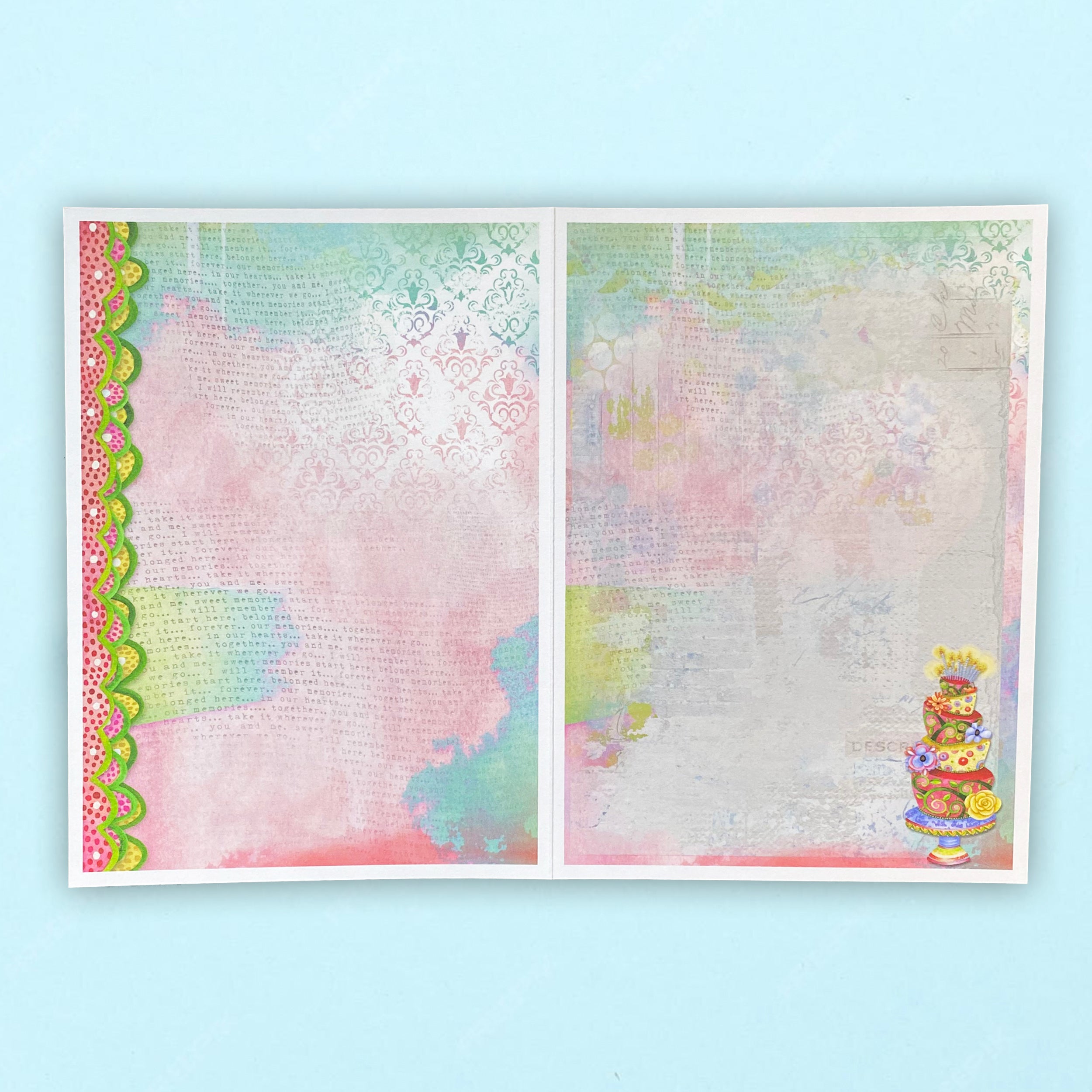 - A7 sized card, 5x7. Comes with a beautifully matching pretty pink envelope. Full color artwork on both the outside and inside of the card!