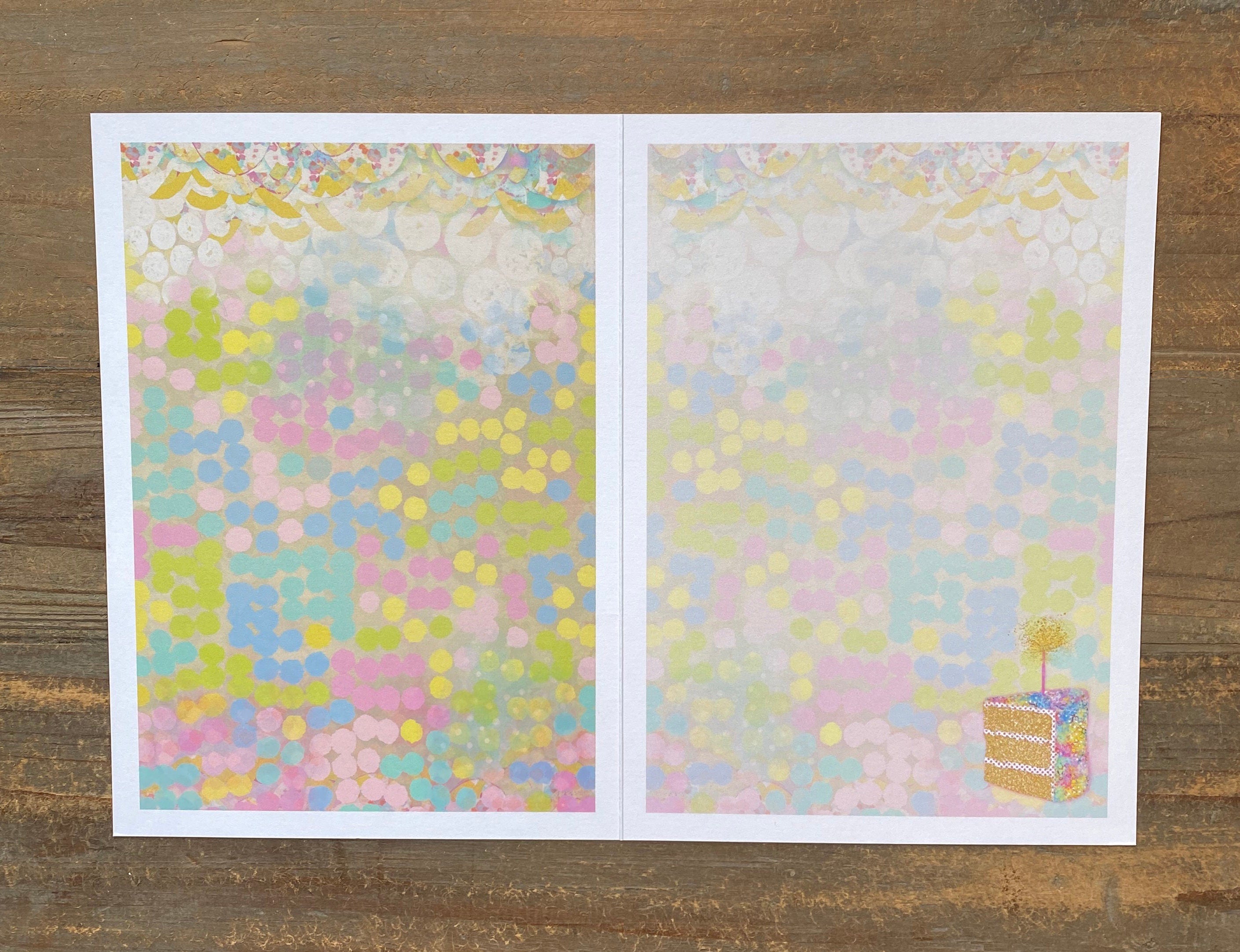 - A7 sized card, 5x7. Comes with a beautifully matching beautiful lime green envelope. Full color artwork on both the inside and outside of the card!