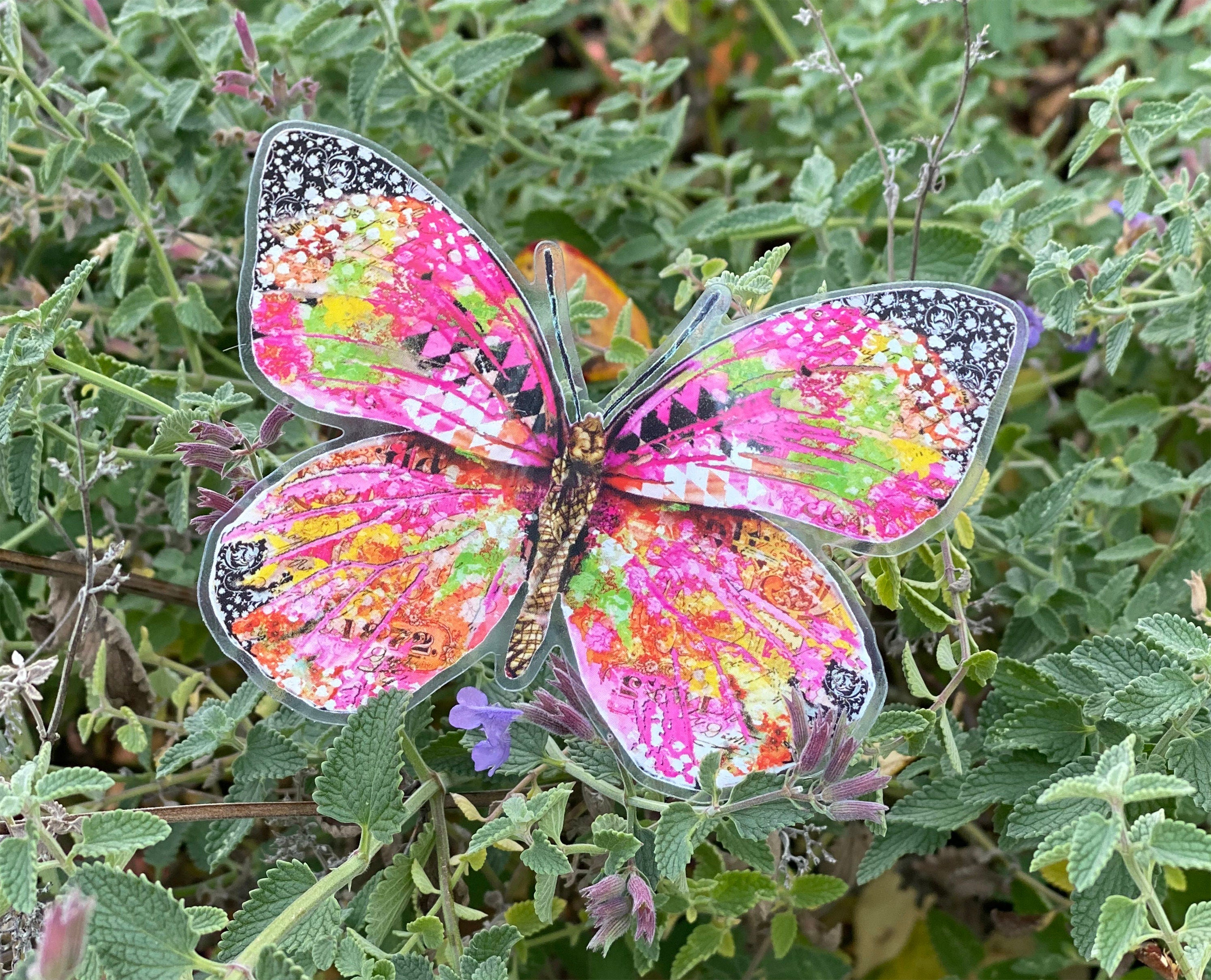 Fly freely with this gorgeously happy and bright pink butterfly sticker!
