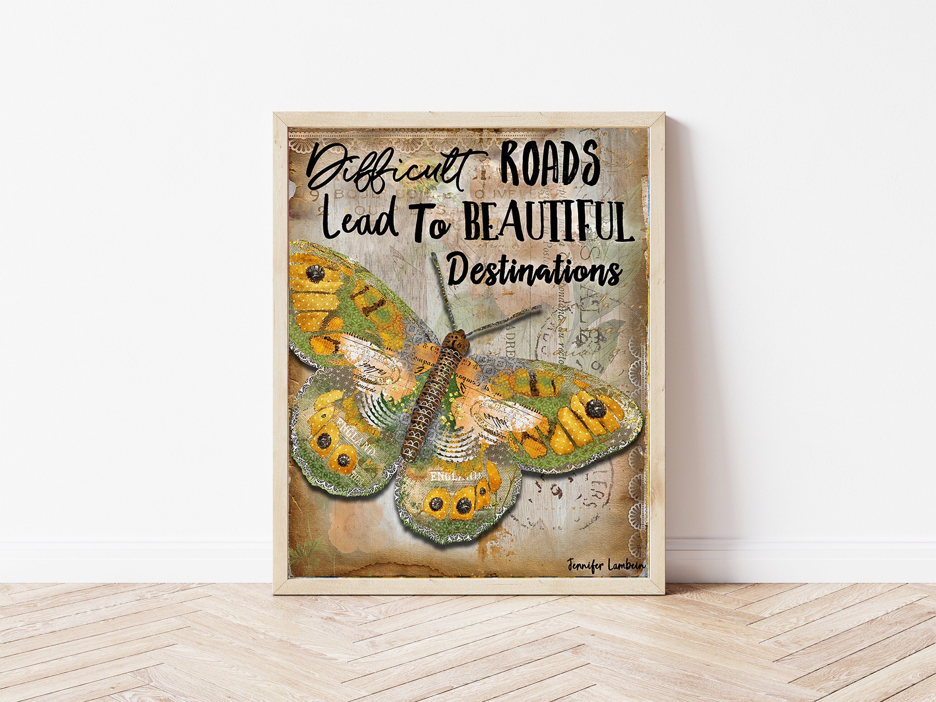 The yellow and green butterfly art is printed on acid free paper with an elegant linen texture. Its subtle linen finish enhances the artistic aspects of the work.