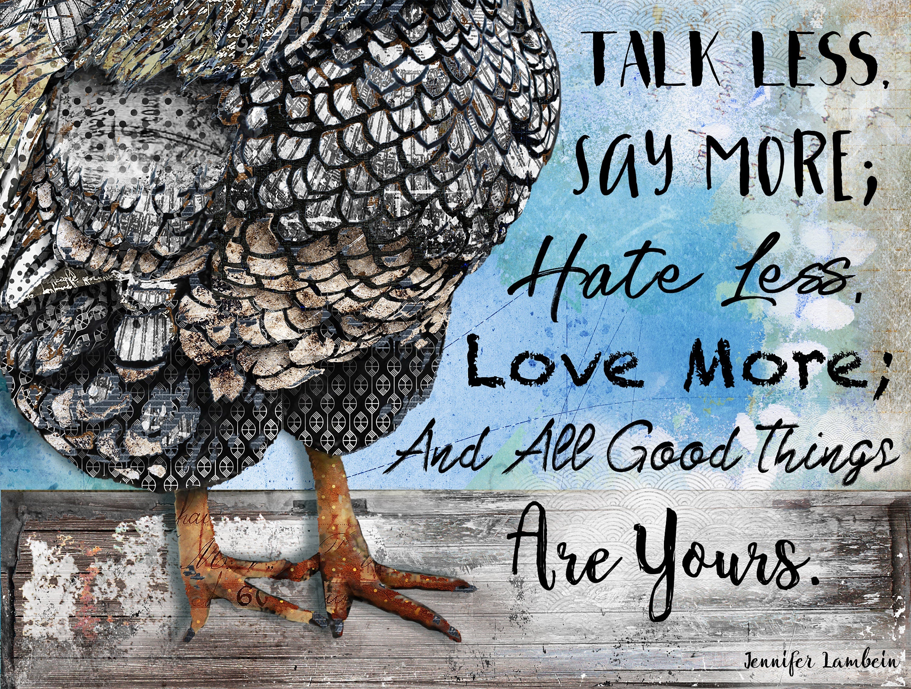 Fear less, hope more; Whine less, breathe more; Talk less, say more; Hate less, love more; And all good things are yours.