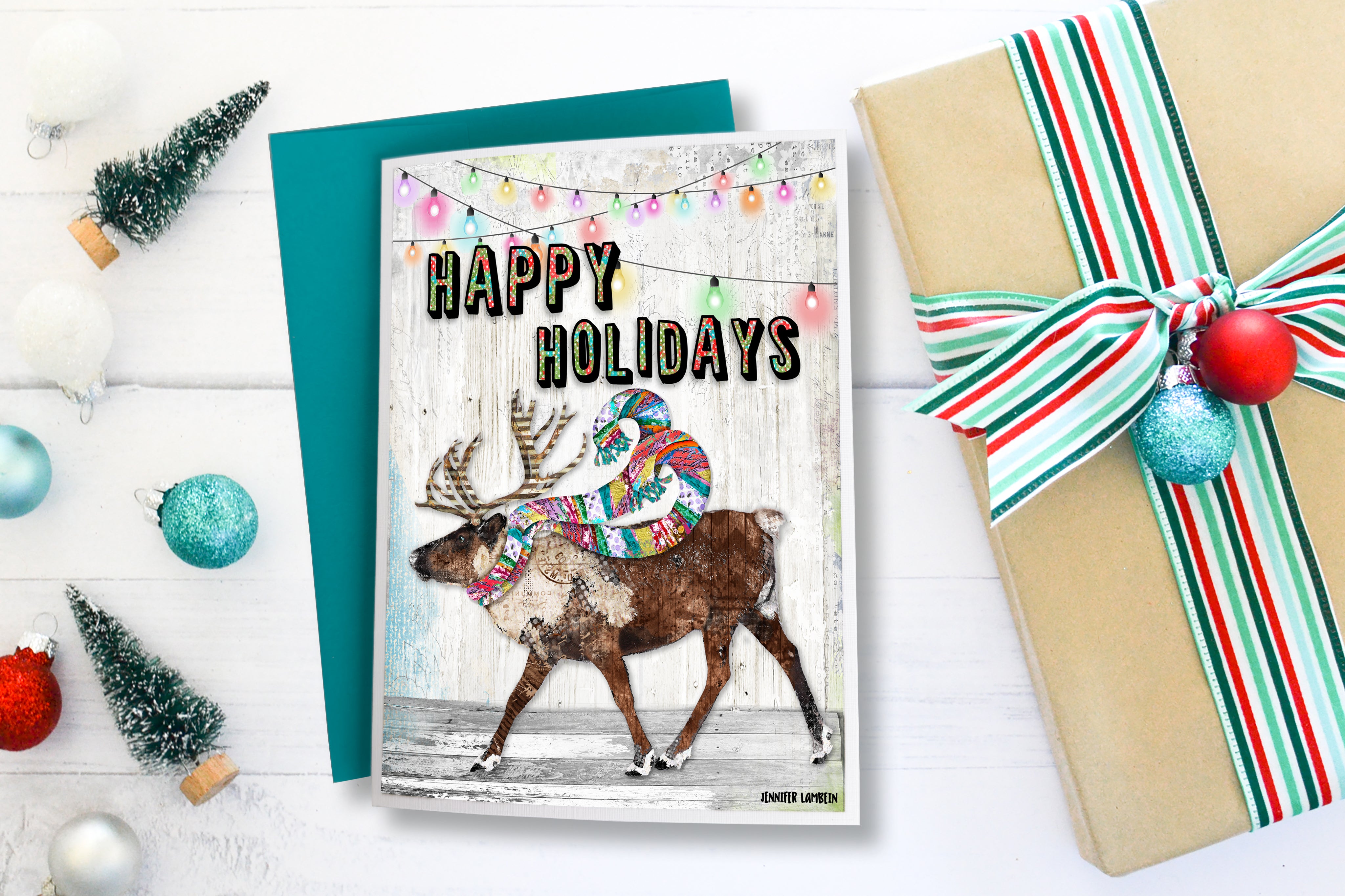 Comfort friends and family this holiday season, with this gorgeously festive reindeer greeting card.
