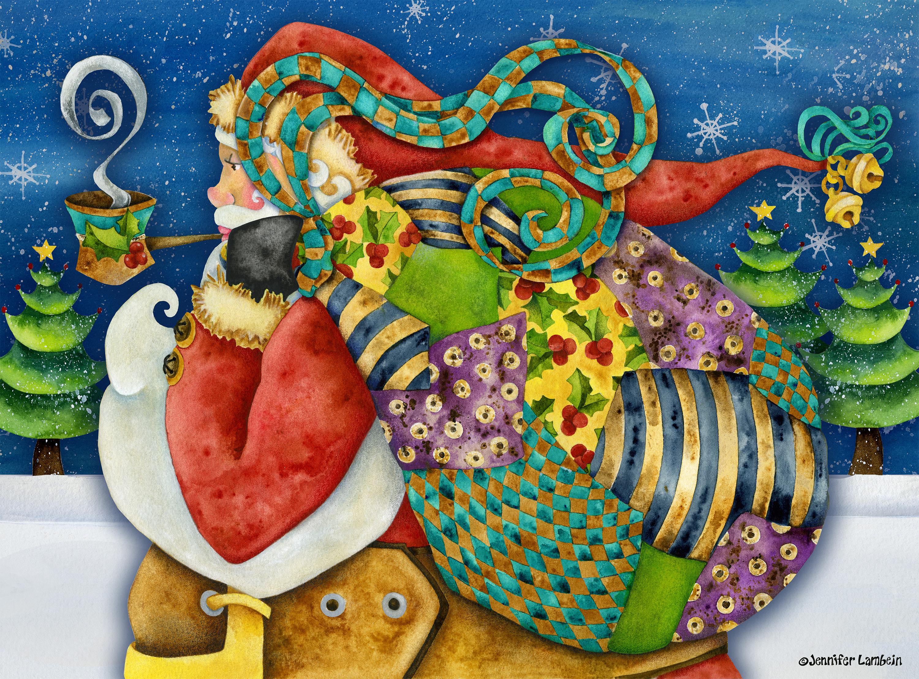 The santa art is printed on acid free paper with an elegant linen texture. Its subtle linen finish enhances the artistic aspects of the work.